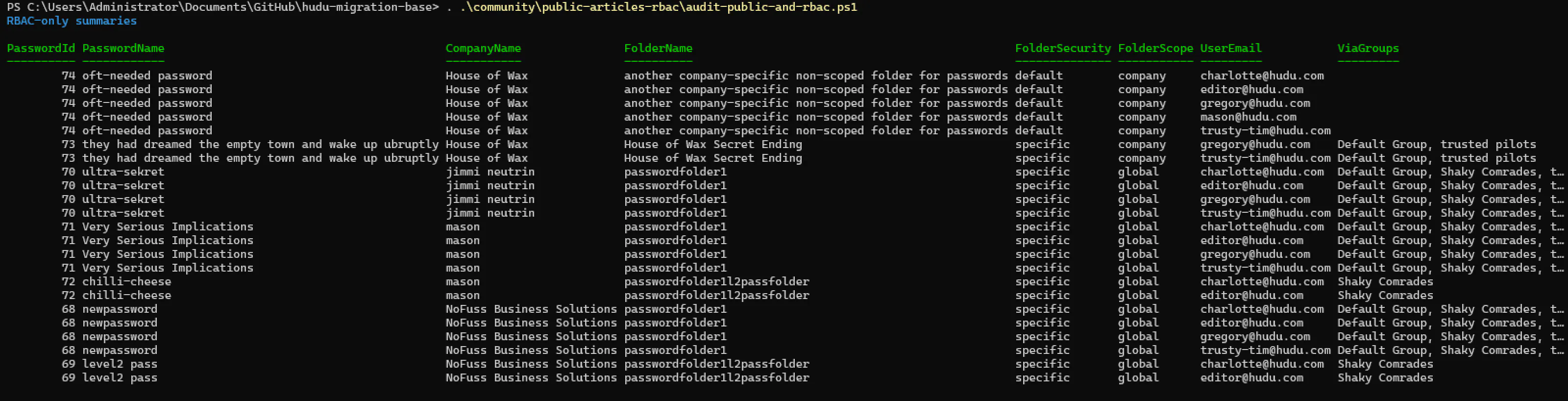 There are several angles to consider - user permissions, group permissions, public articles, password folders, but this handy script can be a useful way to visualize some of these potential areas of improvement.