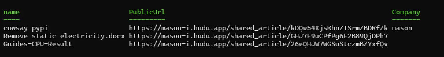Public Articles overview - just a simple table of article name, public url, and company. (if no company is present, it is a Central/Global Knowledge Base article).