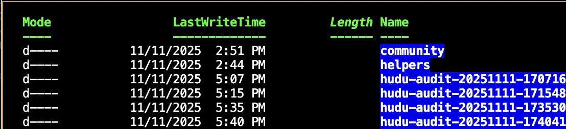 If you wish to use these files, you can open them in a folder named 'hudu-audit' with a timestamp.