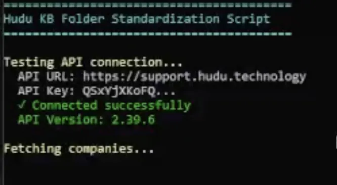 Enter your Azure Vault Key and Hudu URL at the top of the script before running. Select either options 1 or 2 after company listings.