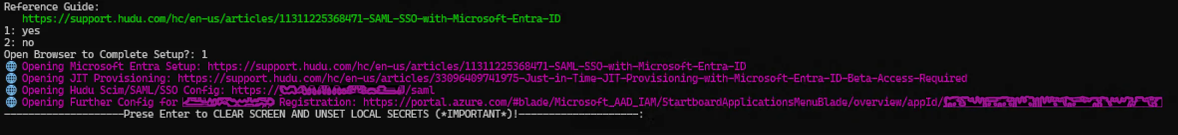 Write-Host " https://support.hudu.com/hc/en-us/articles/11311225368471-SAML-SSO-with-Microsoft-Entra-ID" -ForegroundColor Green