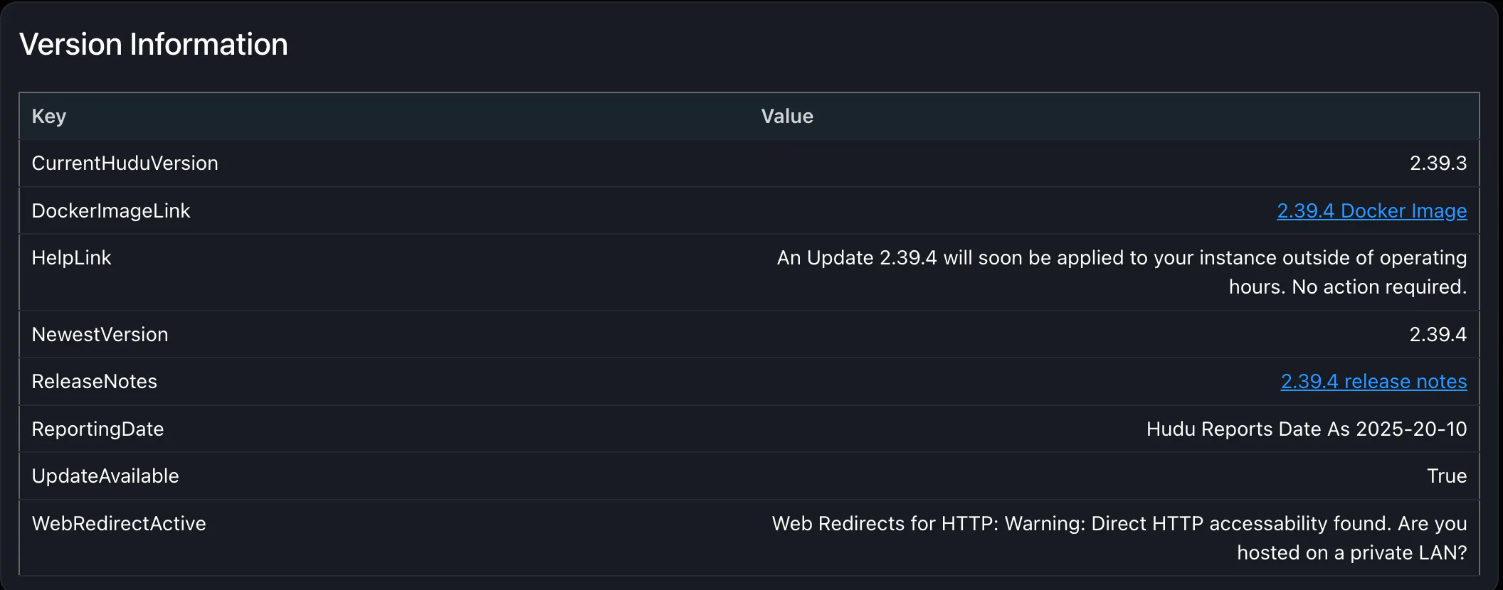 Hudu Reported Date - Date, as reported by Hudu. Can be useful for self-hosted information or just to see when this article was last updated