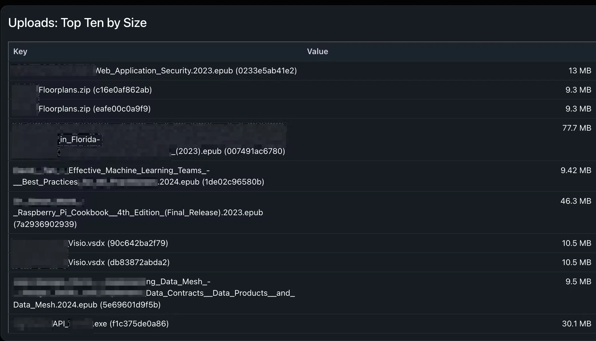 Top-Ten largest Uploads by Size