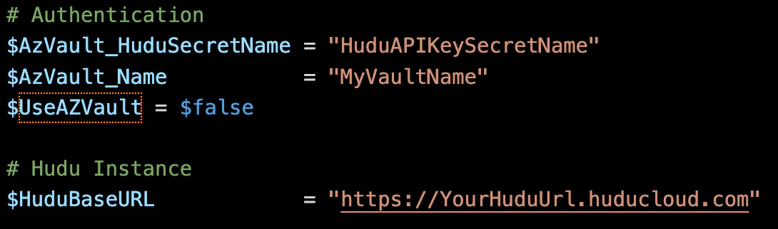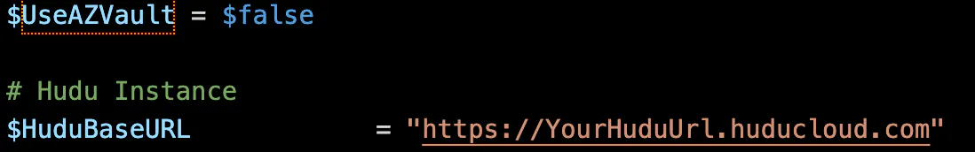 If you'd prefer that this runs on a schedule or non-interactively to always give you the most up-to-date network maps, it's recommended that you use an Azure KeyVault for storing your Hudu API key. To enable this, you'll need to make sure $UseAZVault is set to $true, as well as setting your KeyVault name and Hudu API Key secret name. Also, you'll still want to make sure your $HuduBaseURL value is set.