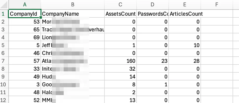 Partners have asked us for a way to audit their companies to determine which companies have little to no assets within them. Attached is an example script for doing just that.