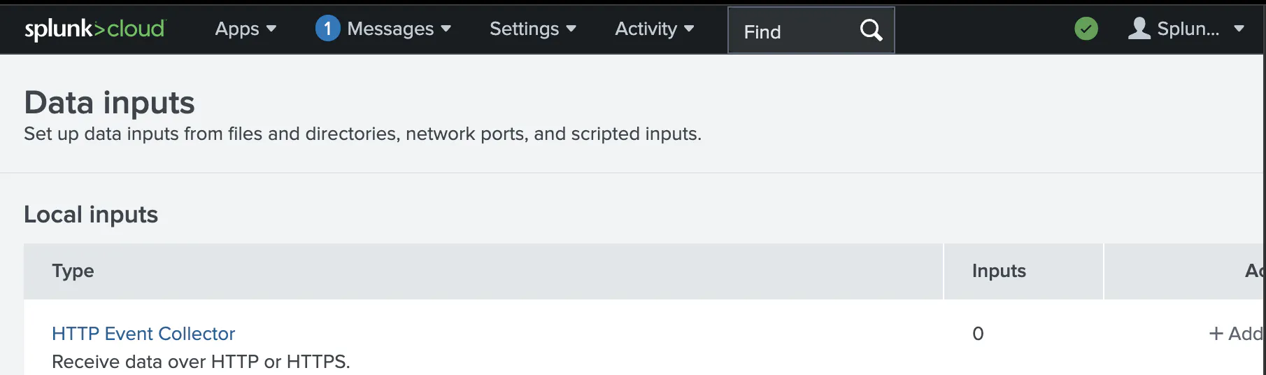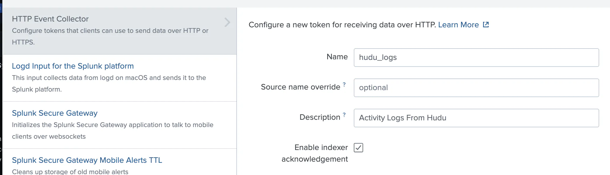 Add an HTTP Event Collector / HEC ingestion method