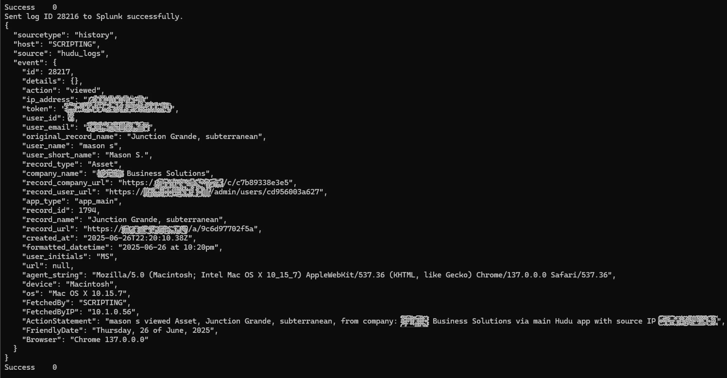 Write-Host "Sent log ID $($Log.id) to Splunk successfully."